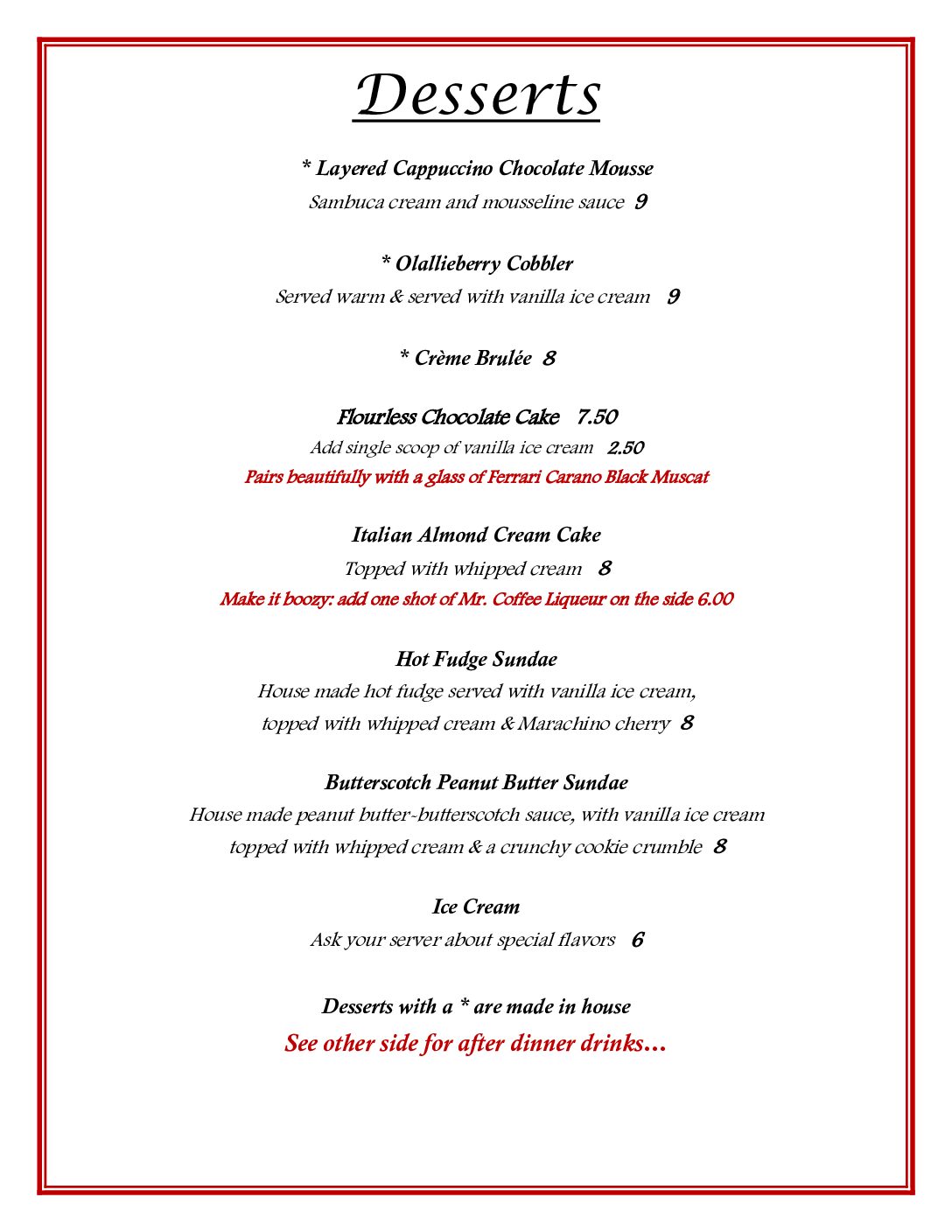 Please note that the restaurant is ADA accessible. There is a two person lift which accommodates a large wheel chair. The entry door of the restaurant has an automatic open and close button to aid those who need help with accessibility. Get more information and photos on our Accessibility Page.